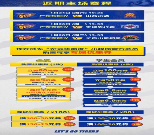 1月21日,CBA常规赛第18轮,广东东阳光将在客场与长白山恩都里男篮交手。上赛季2次交锋,华南虎保持全胜。