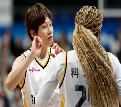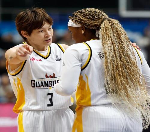 1月20日,广东东莞新彤盛队主教练兼球员黄思静(左一)与球员兼助理教练杨力维(左二)等上场球员致意。新华社记者 王丽莉 摄