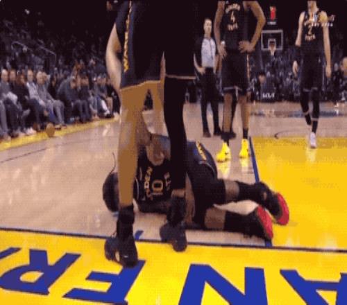 这一幕让我们想起了6年前的总决赛,汤神遭遇左膝十字韧带撕裂,库里坐在地上的背影。