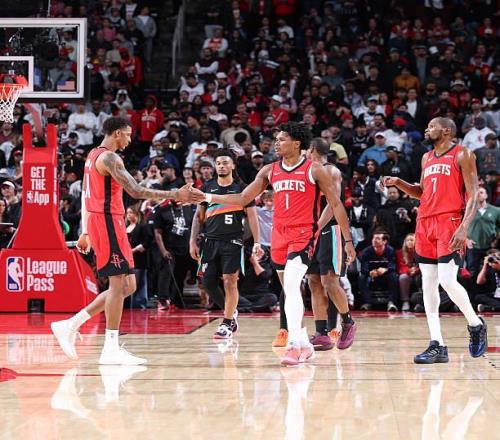 本场比赛中,火箭的先发控卫阿门-汤普森(Amen Thompson)的表现依然是令人喜忧参半。阿门全场出场39分13秒,投篮14中6,三分线外2中0,罚球5中4,得到了16分10篮板6助攻1抢断2盖帽的数据,还有3次失误,正负值为+7。阿门在进攻端虽然依然没有办法找到外线投篮方面的手感,但是他在中距离投篮方面的表现倒是有些出人意料的,他在这方面确实是是起到了一定的作用。不仅如此,阿门在防守端的表现也是可圈可点的,给对手的后场新星斯蒂芬-卡斯尔(Stephen Castle)制造了不小的威胁。当然了,作为一名控卫,阿门在传球和组织方面的表现还是比较一般的,他也需要进一步优化一下自己的进攻选择以提升自己的进攻效率和成功率。