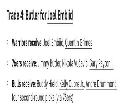公牛得到:希尔德+乌布雷+德拉蒙德+4个二轮签。