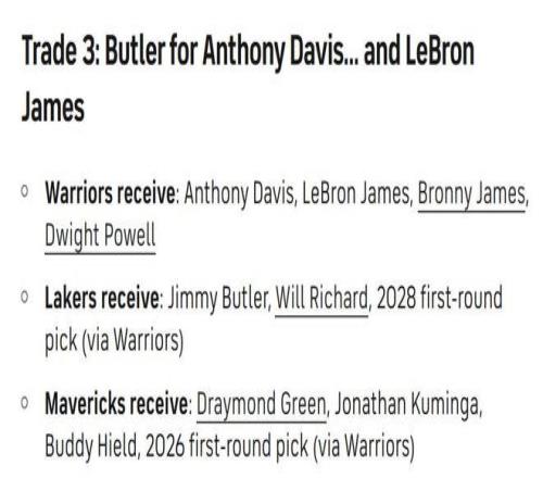 勇士得到:浓眉+詹姆斯+布朗尼+鲍威尔;