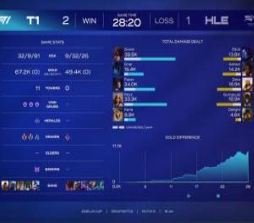 电竞体育1月16报道 LCK杯T1二比一击败HLE,赛后决胜局数据面板,Doran阿卡丽打出的全局伤害大于Zeka沙皇+Gumayusi烬的伤害总和。