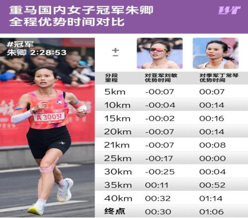 35公里过后,朱卿逐步追至国内领先
