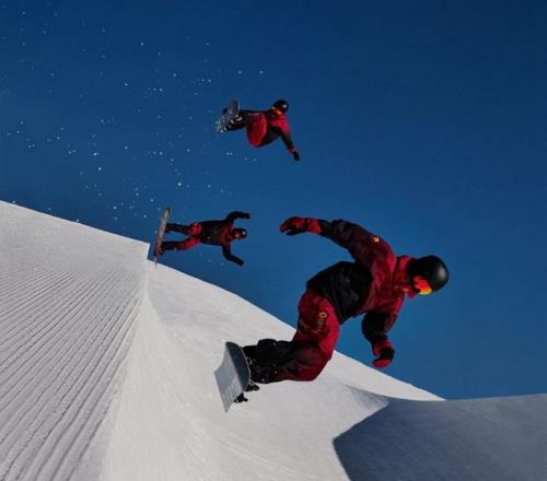图1-2:中国国家高山滑雪队、中国国家单板滑雪U型场地队身着由迪桑特量身打造的队服