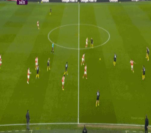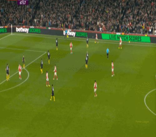 你说这有没有效,当然还是有的,比如在阵型拉得更开之后,阿森纳通过边路形成的进攻效果确实提升了半个档次: