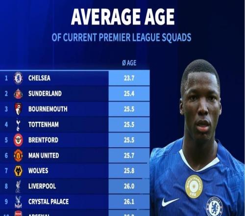 北京时间1月26日,德转统计出了本赛季英超20支球队的平局年龄,切尔西的现有阵容平均年龄仅为23.7岁,为英超最年...